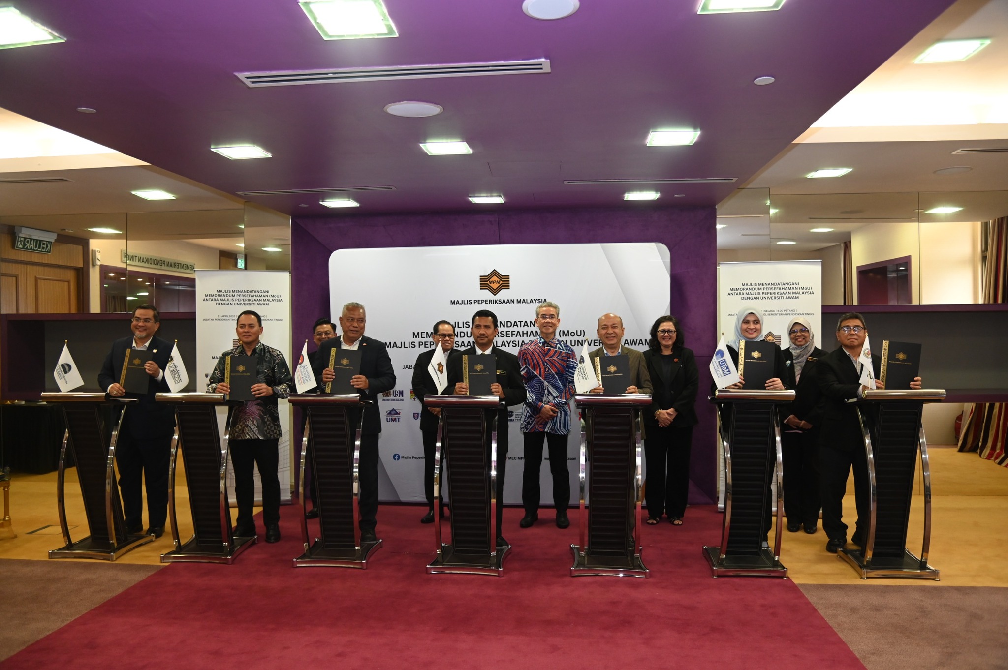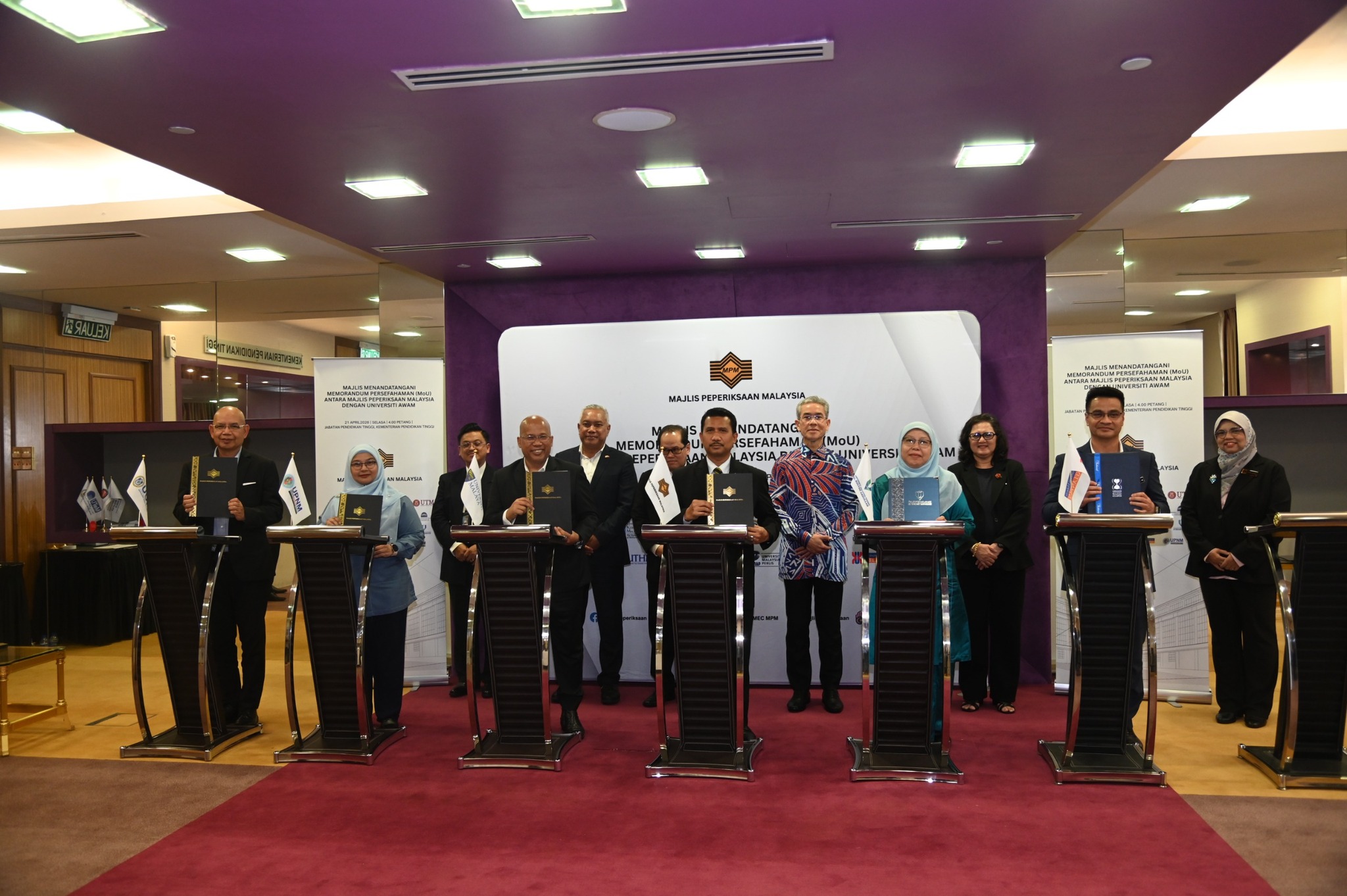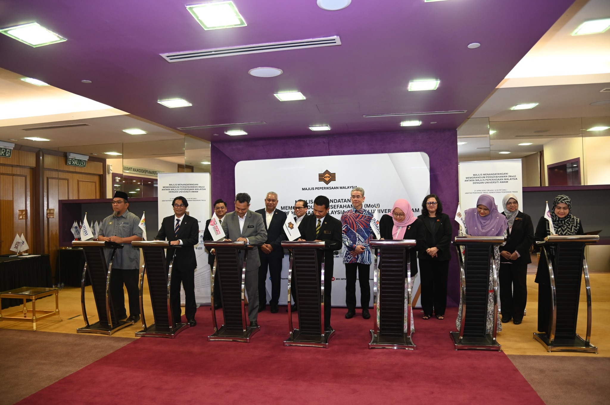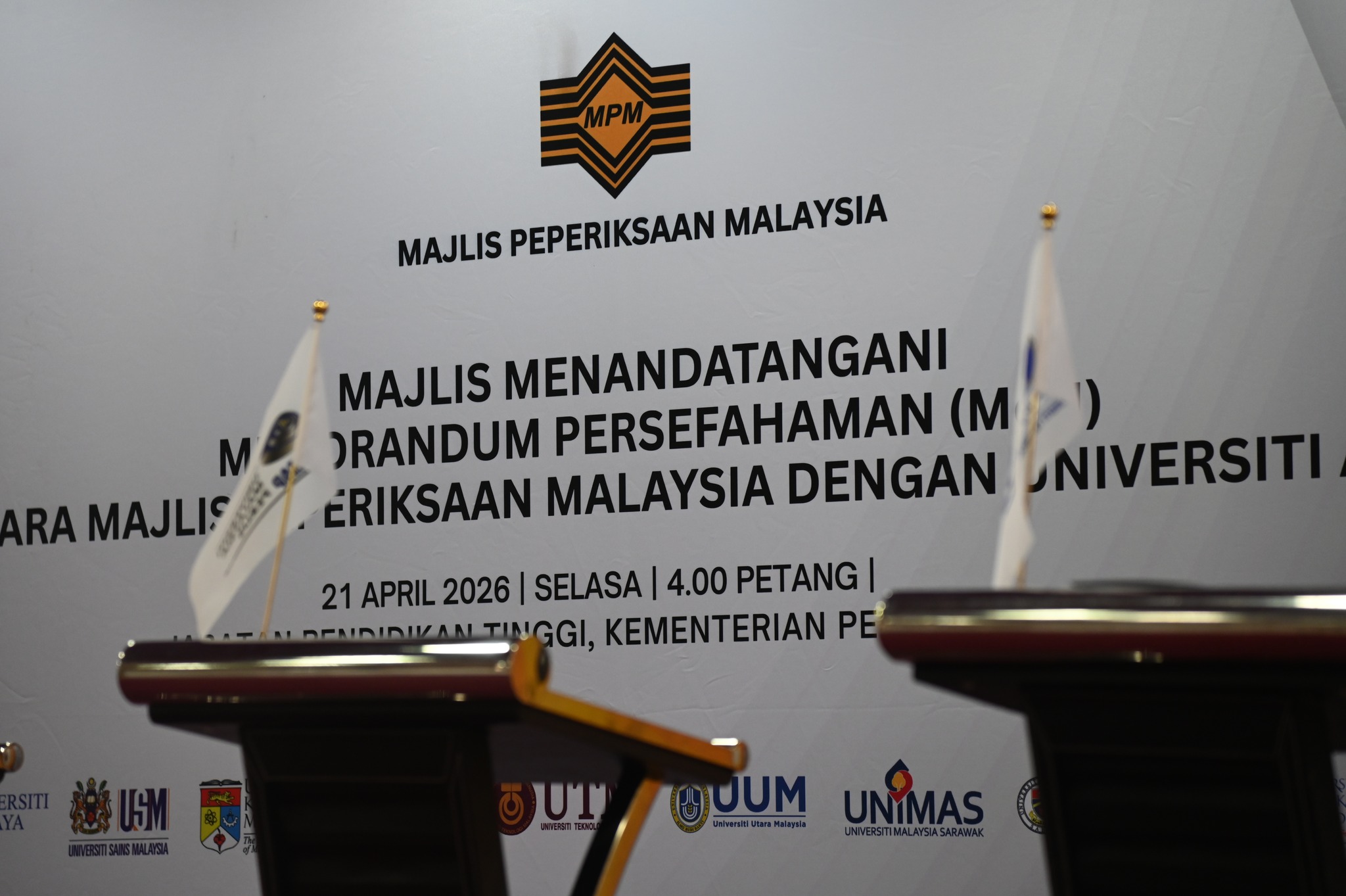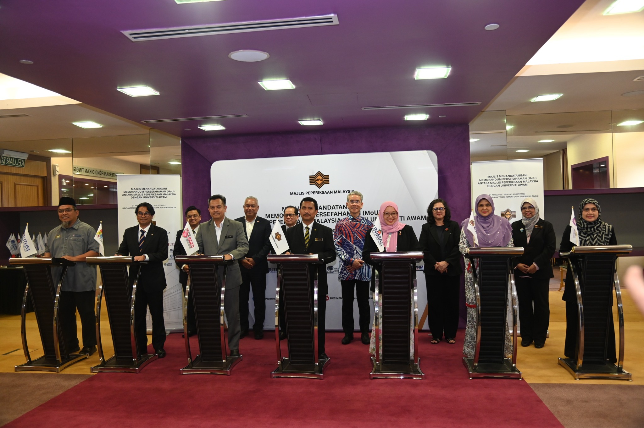 21 April 2026 (Selasa) – Majlis Peperiksaan Malaysia telah menganjurkan Majlis Menandatangani Memorandum Persefahaman (MoU) Antara Majlis Peperiksaan Malaysia Dengan Universiti Awam bertempat di Kementerian Pendidikan Tinggi.